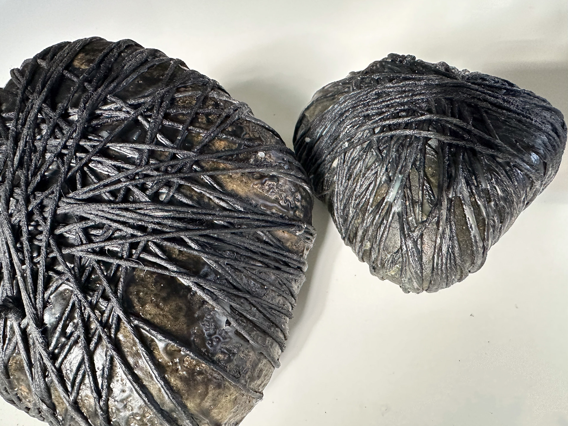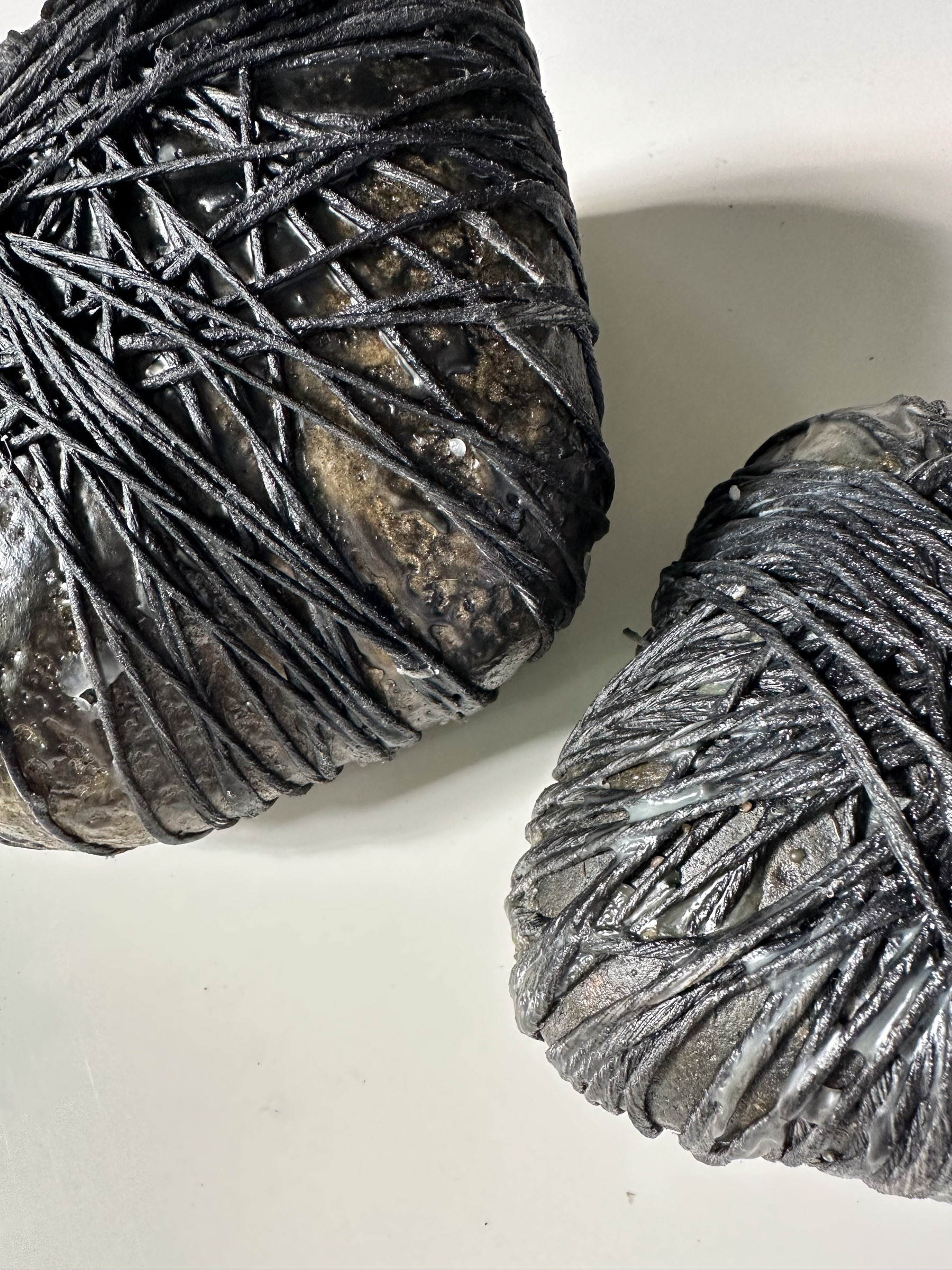 Rocks. Butchers Twine, Beeswax, Charcoal