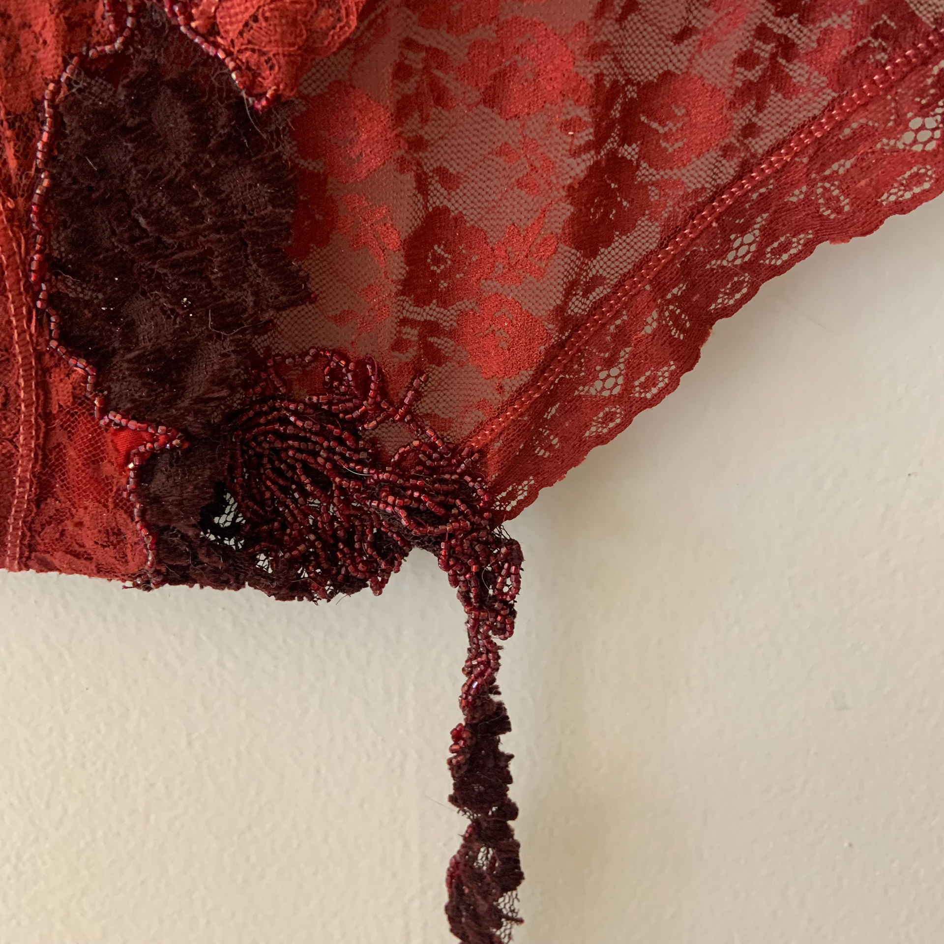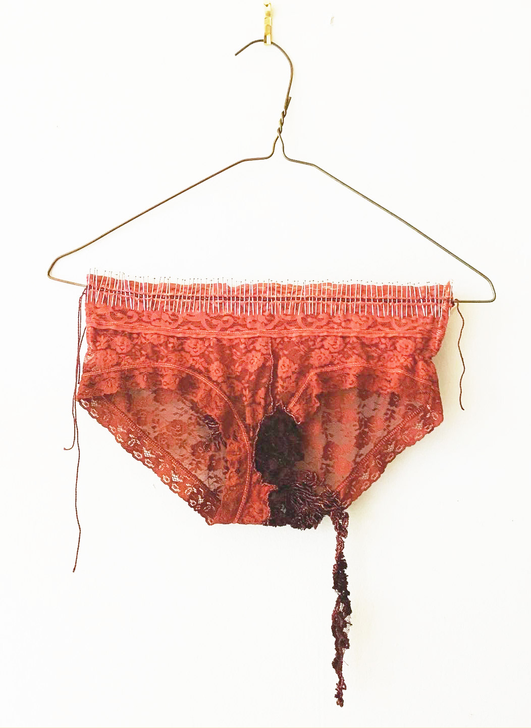 My underwear is not up for Discussion 2022, (18"x18")Underwear, hanger, beads, lace, dissection pints